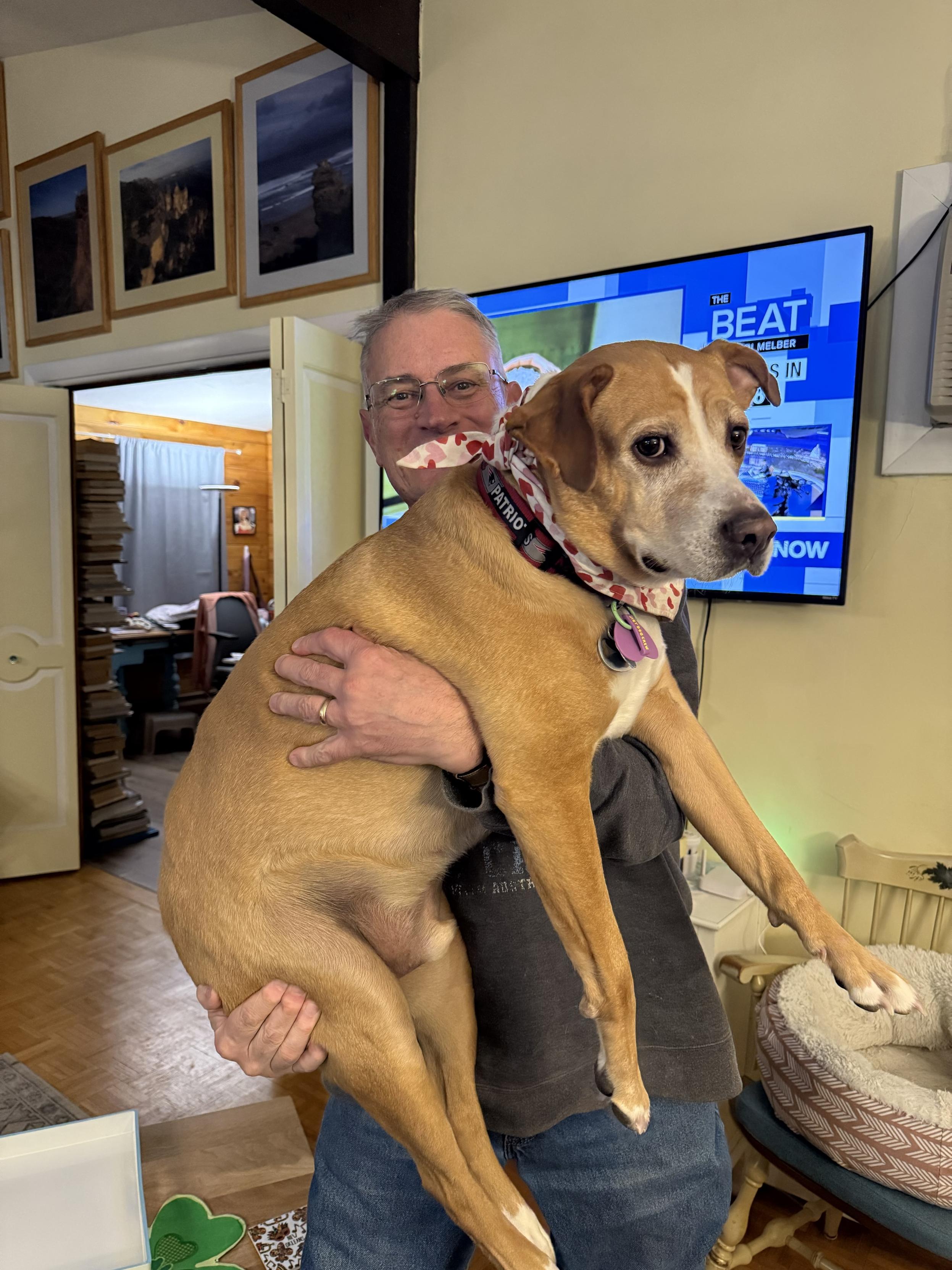 terribly amused because a man on the street remarked that Odin looks just like the dog of <Dutch TV celebrity>. That鈥檇 be Odin鈥檚 full-blooded litter brother. <Dutch TV celebrity> was at the adoption party and held Odin as a puppy